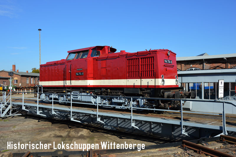 ![]() It's October 10, 2015, and 114 774-3 poses on our turntable for the railway enthusiasts. |