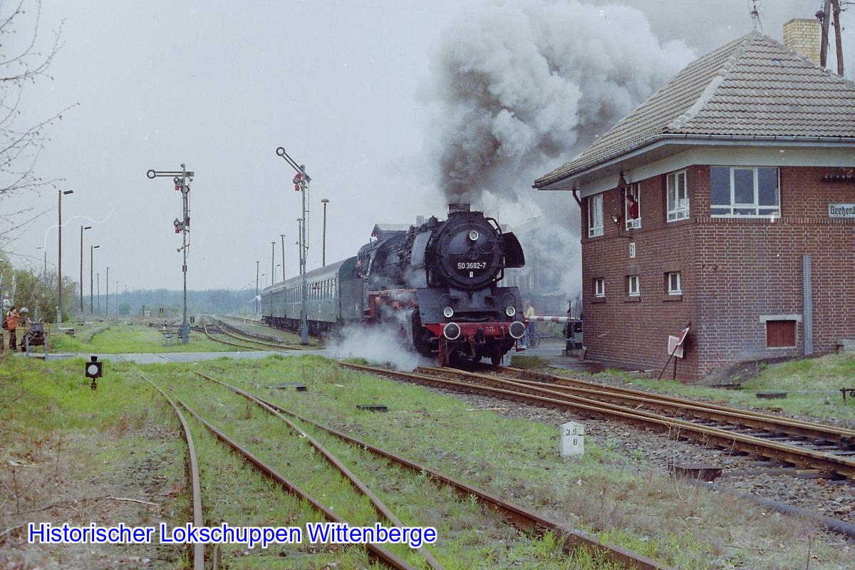 ![]() 30 years of Dampflokfreunde Salzwedel e.V. - Memories On 17 May 1997, our steam locomotive 50 3682 was a guest at the Prignitzer Eisenbahn station festival in Pritzwalk. The photo was taken from the signal box in Pritzwalk. The Pritzwalk railway station can be seen in the background. |