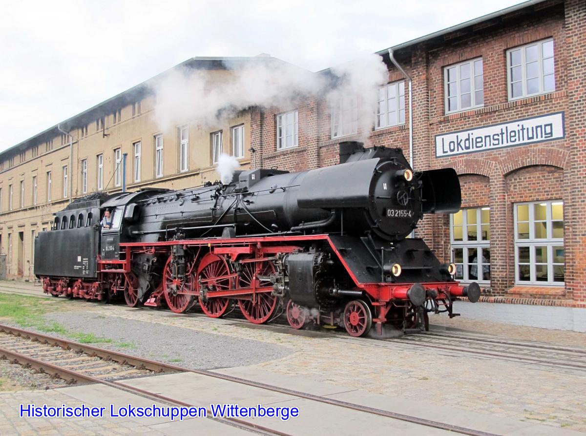 ![]() 30 years of Dampflokfreunde Salzwedel e.V. - Memories After our museum opened, word quickly spread among locomotive operators that Wittenberge once again had the necessary infrastructure to supply steam locomotives. The express locomotive 03 2155 visited us on 18 August 2013. The noble racer belongs to the WFL company and is still available for steam specials today. |