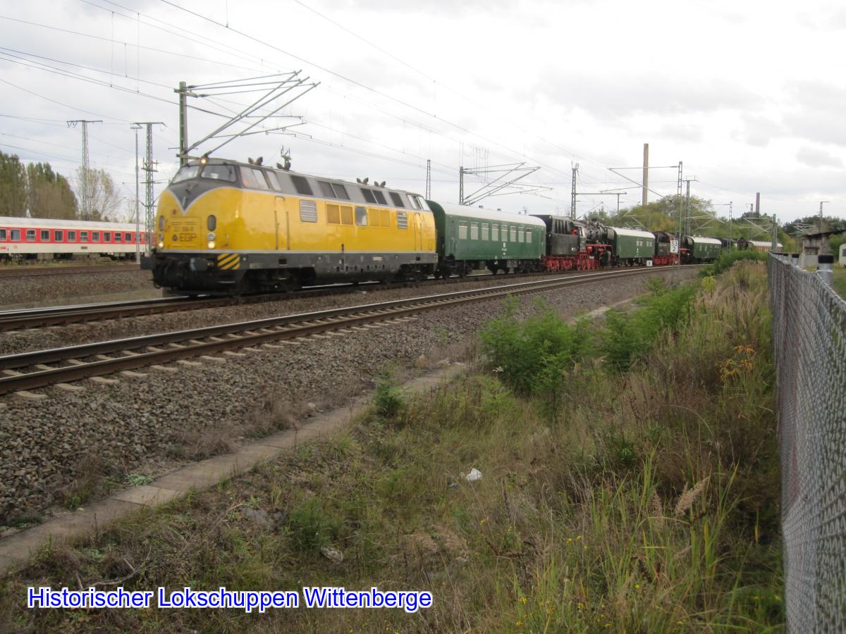 ![]() 30 years of Dampflokfreunde Salzwedel e.V. - Memories 13 October 2012 was certainly one of the most important days in the history of our association. We transferred some of our large steam locomotives from Salzwedel via Stendal to Wittenberge. The following picture shows the train consisting of some of our class 50 steam locomotives, with the wagons of the so-called disaster train in between, which provided the necessary braking effect for the train. The locomotive was 221 106 of the Potsdam railway company, which has since been sold. |
