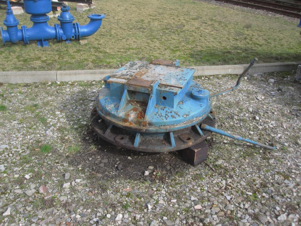 Next to that is a centre bearing, which contains the turntable's rotating bearing. This is anchored downwards in the centre of the turntable pit and the deck of the turntable is placed on top of it. In the centre bearing there are also slip rings and corresponding current collectors which form the electrical feed to the turntable drive.