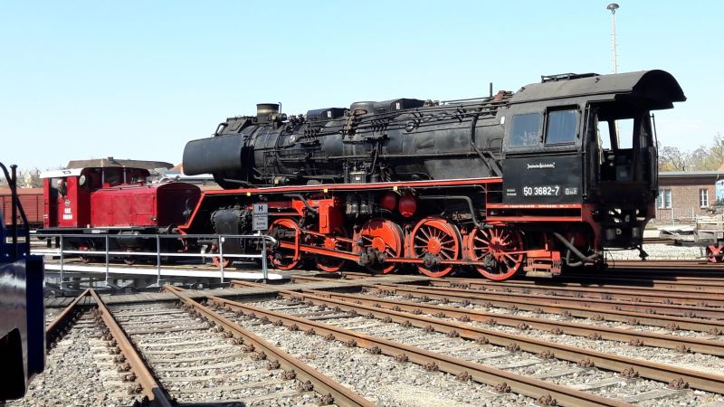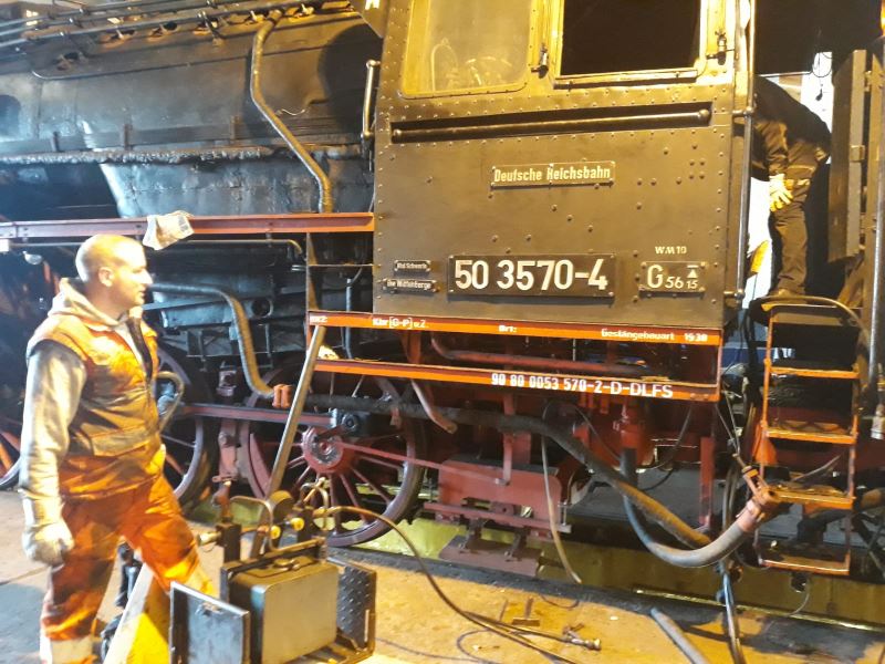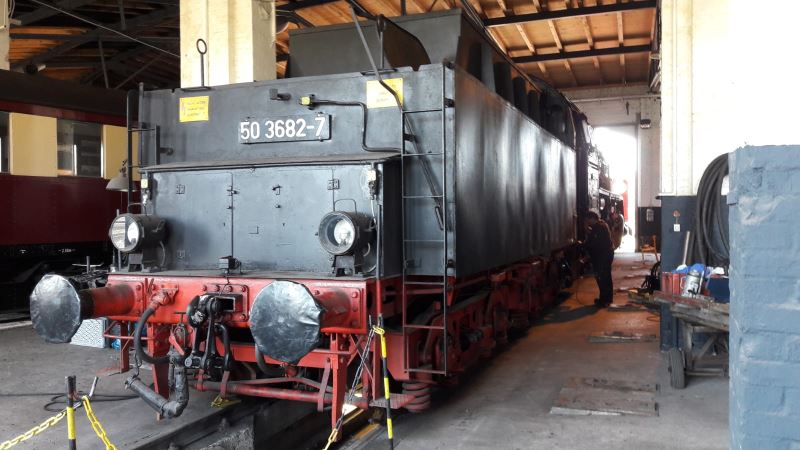 As regular readers of our newsletter will already know, we are currently in the middle of a general overhaul on our steam loco 50 3570. To obtain the official permit ("ticket") following the overhaul, all parts of the engine must be in perfect working order. Since there is still work outstanding on the locomotive's tender - that is, the truck attached which carries its coal and water - the tender has been exchanged with that from 50 3682-7, which still has a valid ticket. This change of tenders will help to speed up the return of 50 3570 to traffic.
