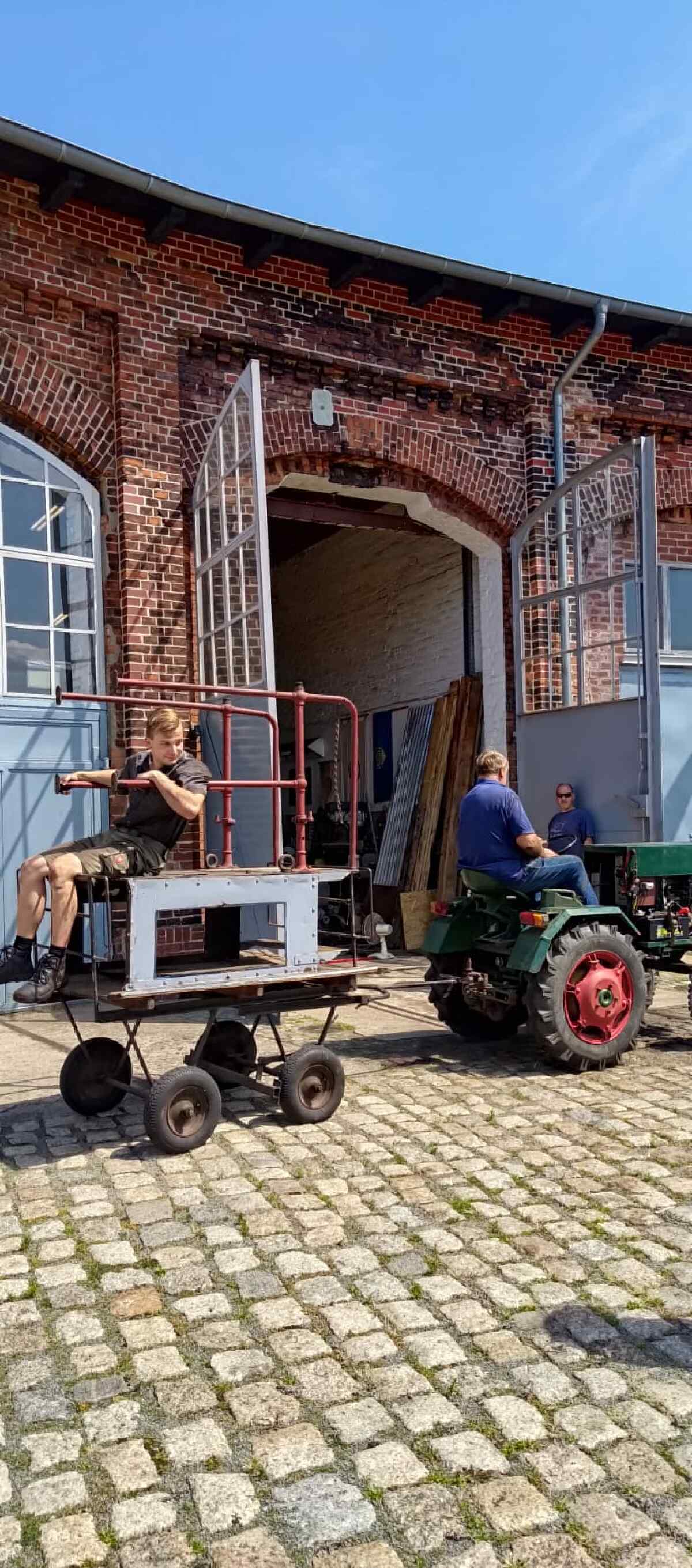 The refurbishment of our smallest shunting machine is also drawing to a close. Now that the engine, gearbox and brakes have been installed in the so-called Breuer tractor, the segments of the driver's cab have been fitted, from where the vehicle is operated. Now the new cables for the electrical system are still missing and then it can finally leave the workshop and stand on rails again.