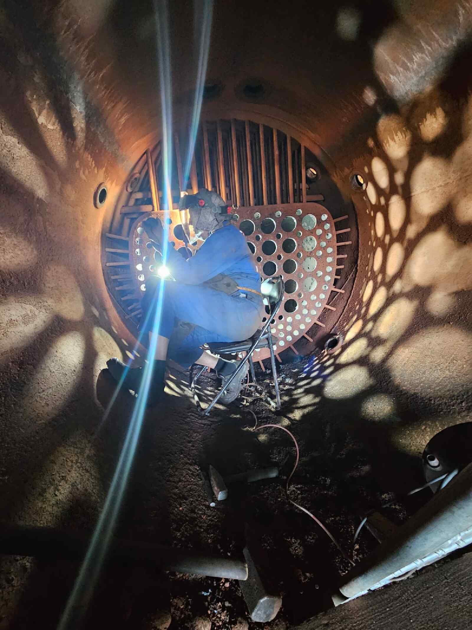 Our own steam locomotive 50 3570 is still ‘undergoing treatment’. As we have already reported, all the tubes have been removed from the boiler so that they can be replaced with new ones. In the meantime, the boiler overhaul has made further progress. Here the pipe walls have been ground. These are the metal walls in the boiler between which the pipes run. The openings that accommodate the pipes must actually be circular so that the new pipes can actually be installed pressure-tight.
