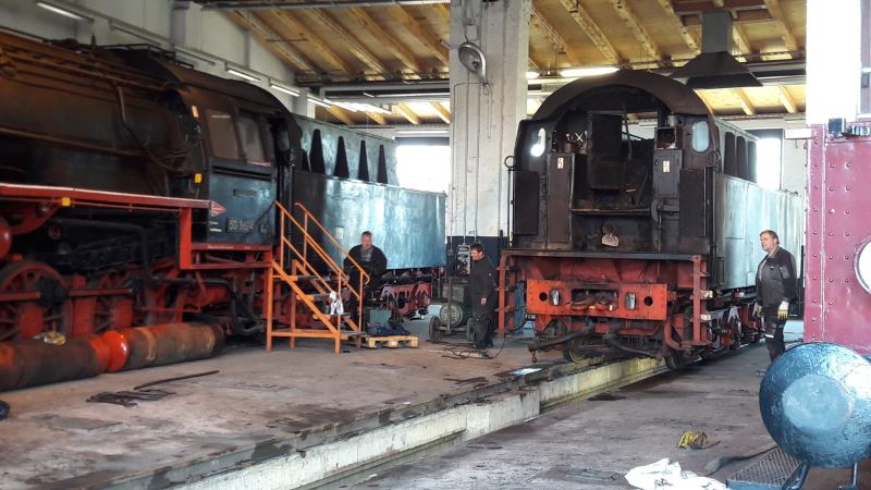 Am 31.10.2015 hat unsere Dampflok 50 3682-7 ihre Hauptuntersuchung absolviert und steht ab sofort wieder für Fahrten zur Verfügung. Die 1939 bei Krauss-Maffei in München gebaute Maschine ist seit 1992 Museumsfahrzeug und stand bis 2011 im Dienst. Danach musste sie abgestellt werden, weil ihre Untersuchungsfristen (eine Art TÜV-Frist bei Eisenbahnfahrzeugen) abgelaufen waren. Nach einigen Reparaturen und umfangreichen Prüfungen steht sie nun wieder für die nächsten Jahre als betriebsfähiges Exponat im Historischen Lokschuppen Wittenberge zur Verfügung. Das Foto zeigt sie an dem im Jahr 2014 wieder errichteten Wasserkran vor der Lokleitung in Wittenberge.