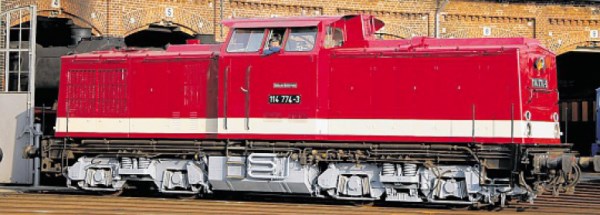 Bisher präsentierte sich der Stahlkoloss aber noch in den Farben der Deutschen Bahn AG. Bereits seit längerem stand für die Wittenberger Eisenbahnfreunde jedoch fest: 114 774 soll wieder in den Farben der ehemaligen Deutschen Reichsbahn (DR) erstrahlen.