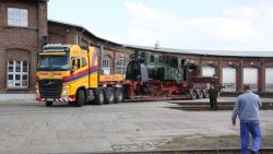 von Reik AntonWittenberge Vorsichtig setzt der Tieflader zurück, der Fahrer schaut hier, dort, bremst ab. Dann steigt er aus und legt den Zollstock an. "Es ist Millimeterarbeit", sagt Dirk Endisch vom Lokschuppen-Verein. Wenn "Emma" verreist, ist das nicht so einfach. Immerhin wiegt sie gut 30 Tonnen. Außerdem ist sie etwas Besonderes: die älteste Museums-Dampflok Wittenberges.