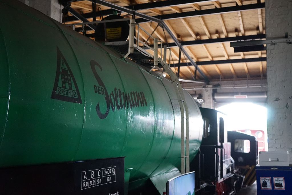 Das ehemalige Salzwedeler Bier Soltmann auf einem Waggon.