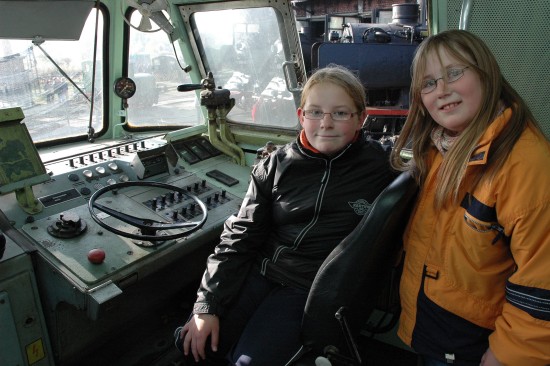 Finden Dampflokomotiven am besten, sahen sich aber auch im Führerstand einer alten Diesellok um: "Ganz schön großer Motor", fanden Fabienne und Celine Resener.
