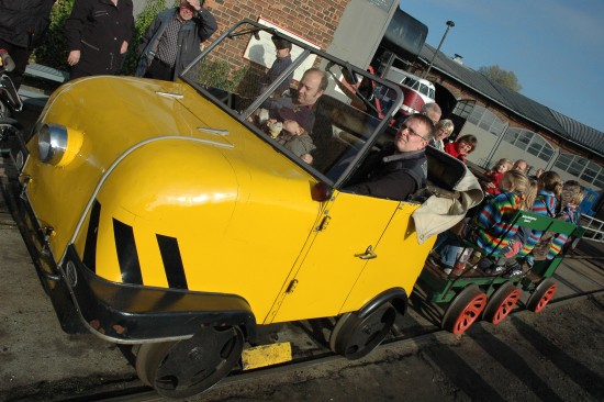 Marcel Geisler fuhr die Besucher auf seiner 26 PS starken Trabant-Draisine über das Bahngelände.