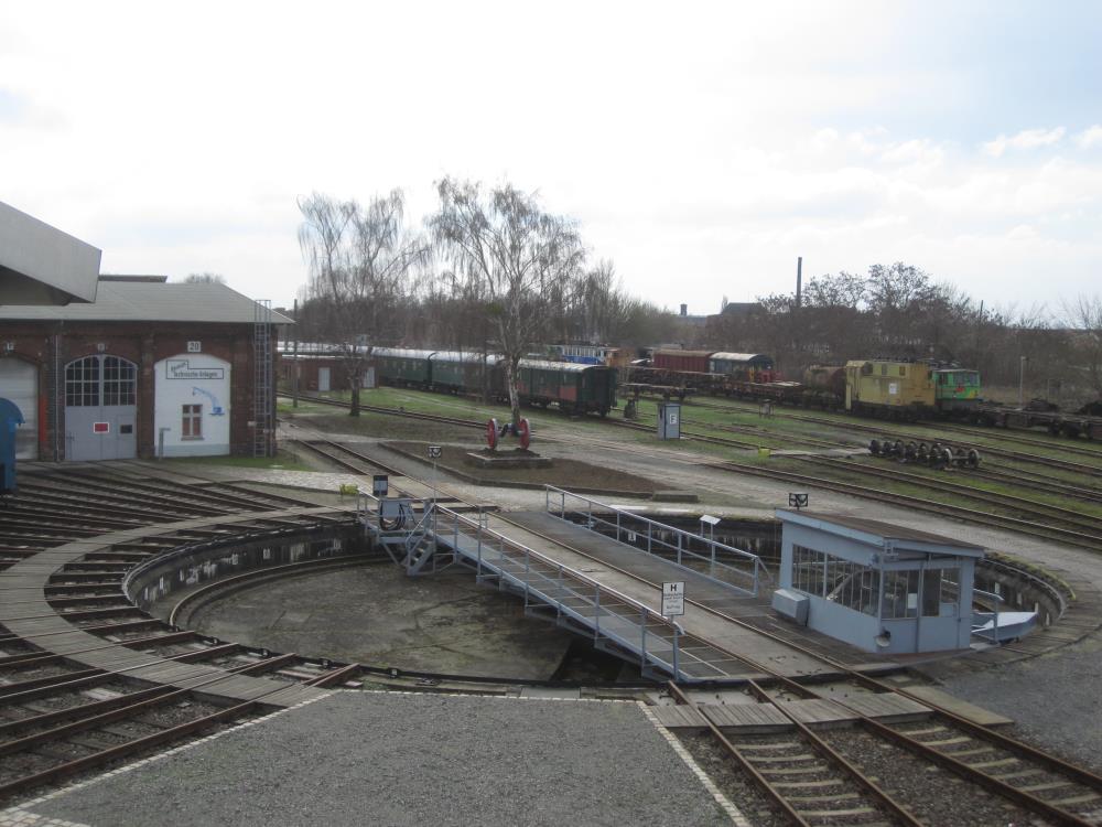 The turntable is the centrepiece of the museum's premises. It is used to turn incoming locomotives onto the appropriate adjoining shed road, or track. The installation has a maximum working load of 350 tonnes and can be operated by electricity, compressed air or pure muscle power. The turntable deck is almost 24 metres (about 78 ft) long, making it the largest surviving installation of this type in Germany.