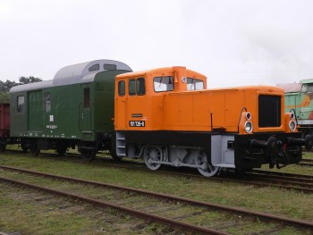 This small shunting loco of type V18 is on long-term loan from the town of Wittenberge. It was last in service in the Wittenberge repair and maintenance workshop, the former RAW Wittenberge, where it bore the number 261 084-5, although it had never actually been allocated a DR number, being delivered when new to a "Peoples' company". The loco is not currently operational and is awaiting restoration.
