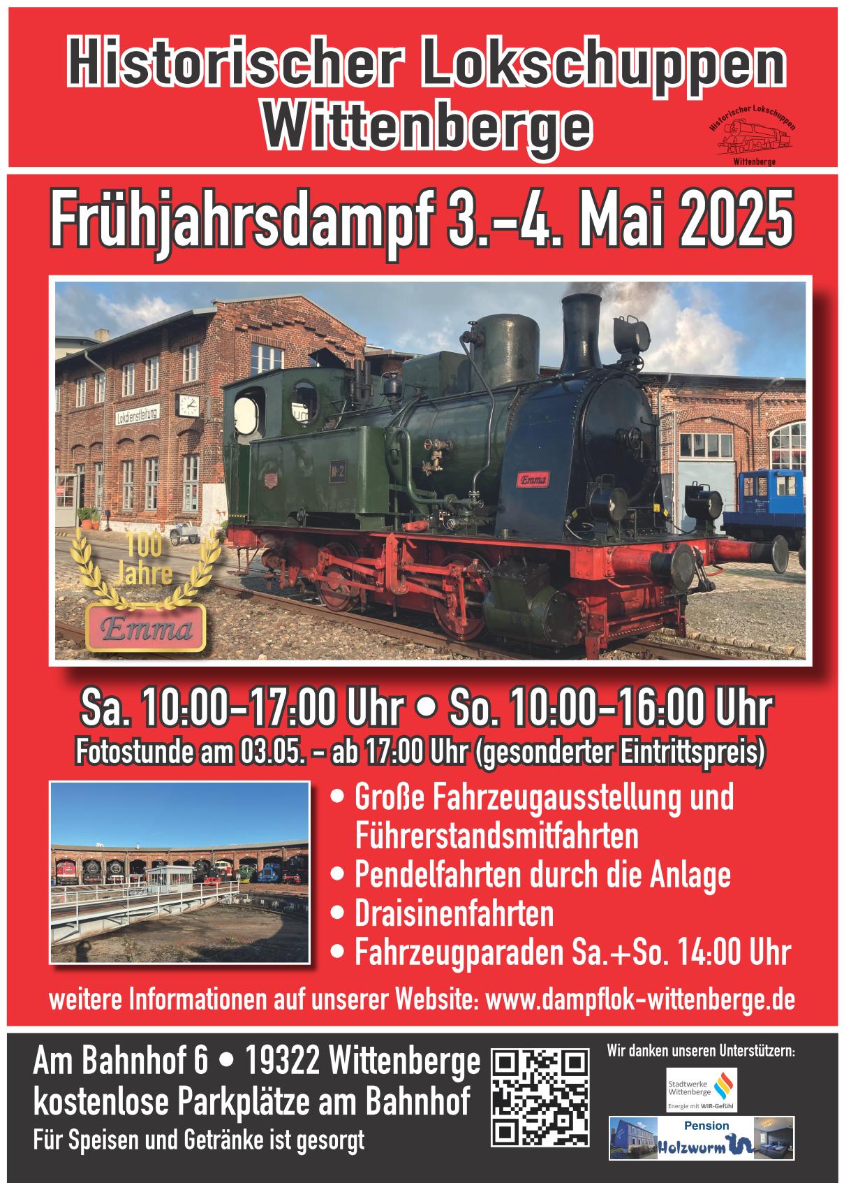 Sollte die Baustelle am nächsten Wochenende noch bestehen, bitten wir um entsprechende Vorsicht. Ein Zugang zum Museum wird aber auf jeden Fall möglich sein. Wir freuen uns auf Ihren Besuch und sind vom kommenden Samstag wieder jeden Samstag bis Oktober für Sie da. Nicht vergessen: Frühjahrsdampf am 3./4. Mai 2025!